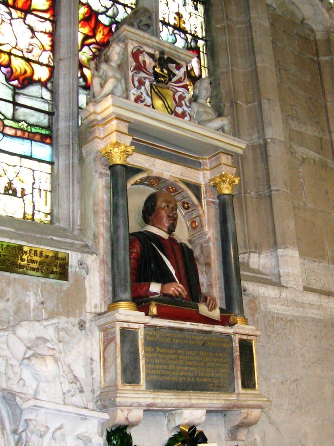 Bust and grave of William Shakespeare.