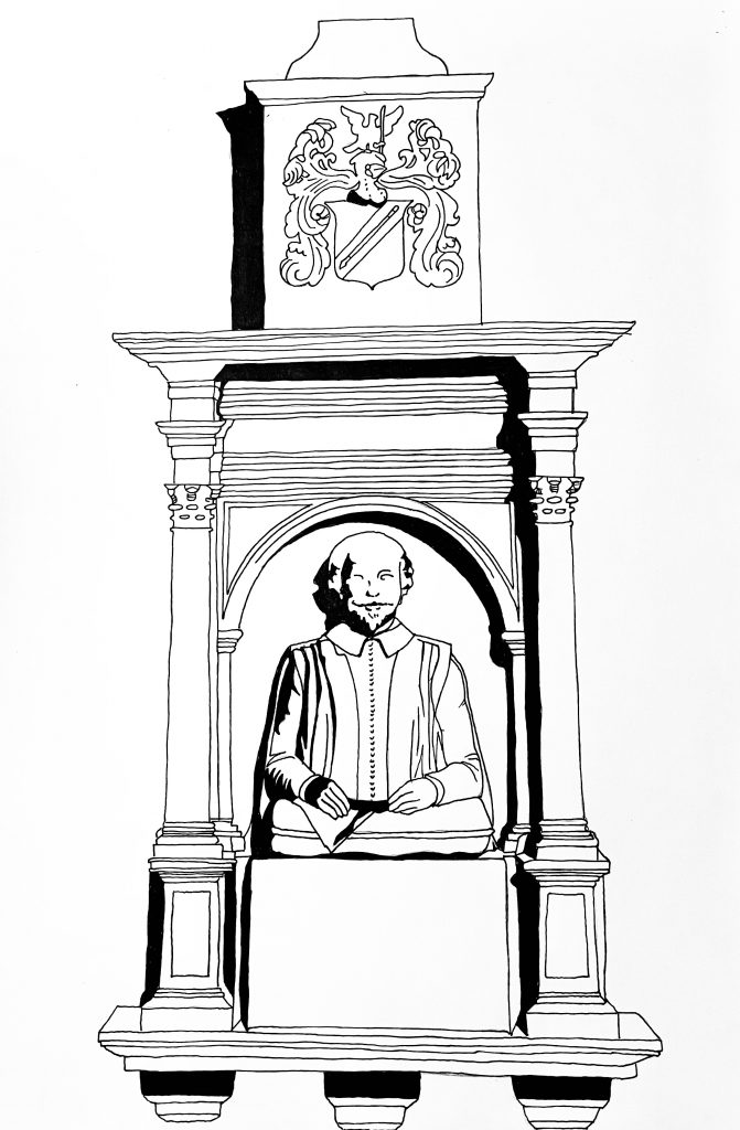 Coloured plaster cast of the Holy Trinity tomb monument to William Shakespeare in the National Portrait Gallery.