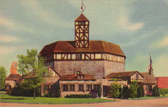 According to the official guide book of the exposition: “Near the General Motors Auditorium, this bit of Merrie Old England recalls the days of Shakespeare, Kit Marlowe, Ben Johnson and the gallant Walter Raleigh. Here, in a setting that brings back the times of Good Queen Bess, you find a complete reproduction of the Old Globe Theatre in which the plays of Shakespeare were first produced, in London, during his lifetime.” (From the Historic Fair Park, Dallas, Texas website)