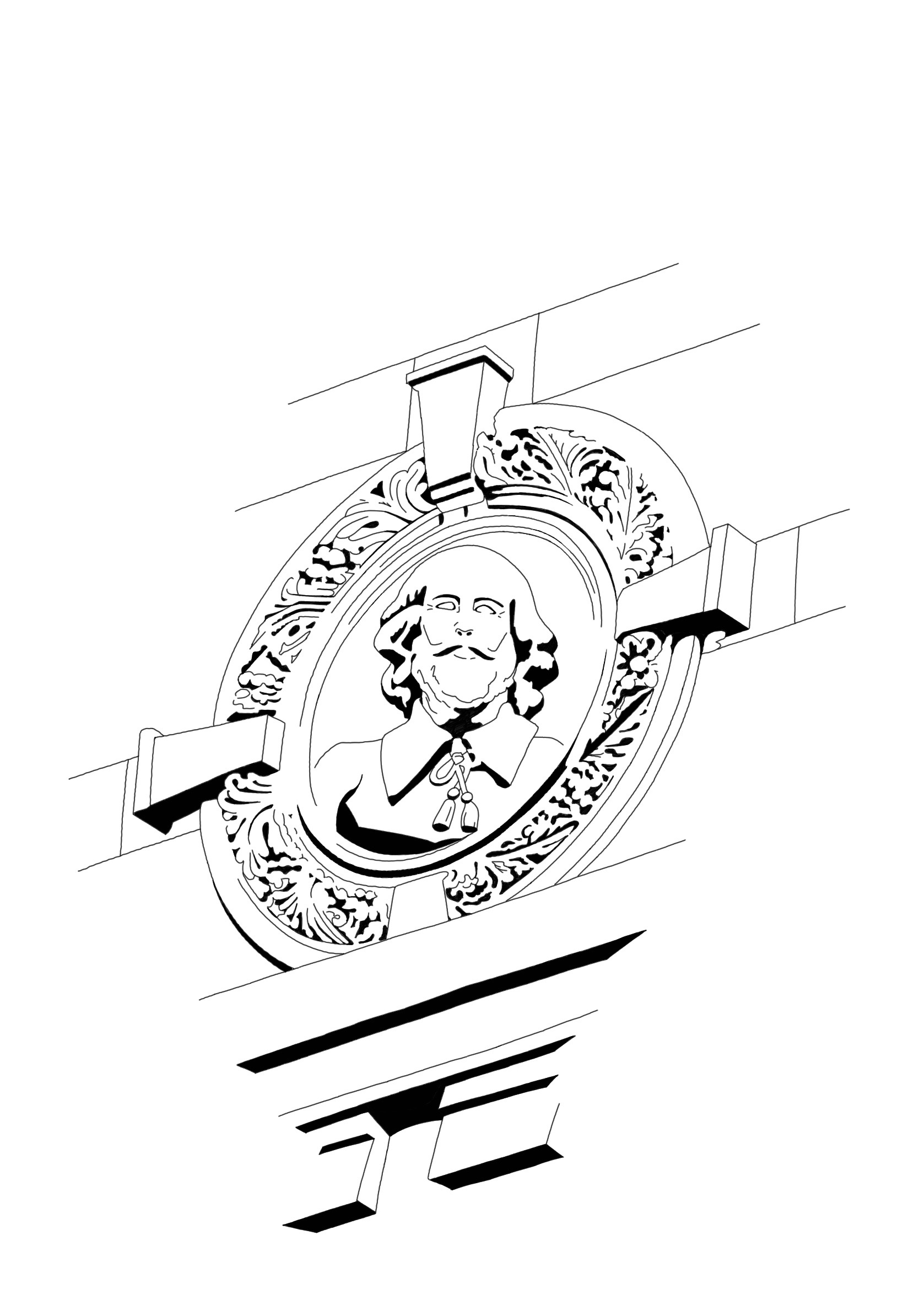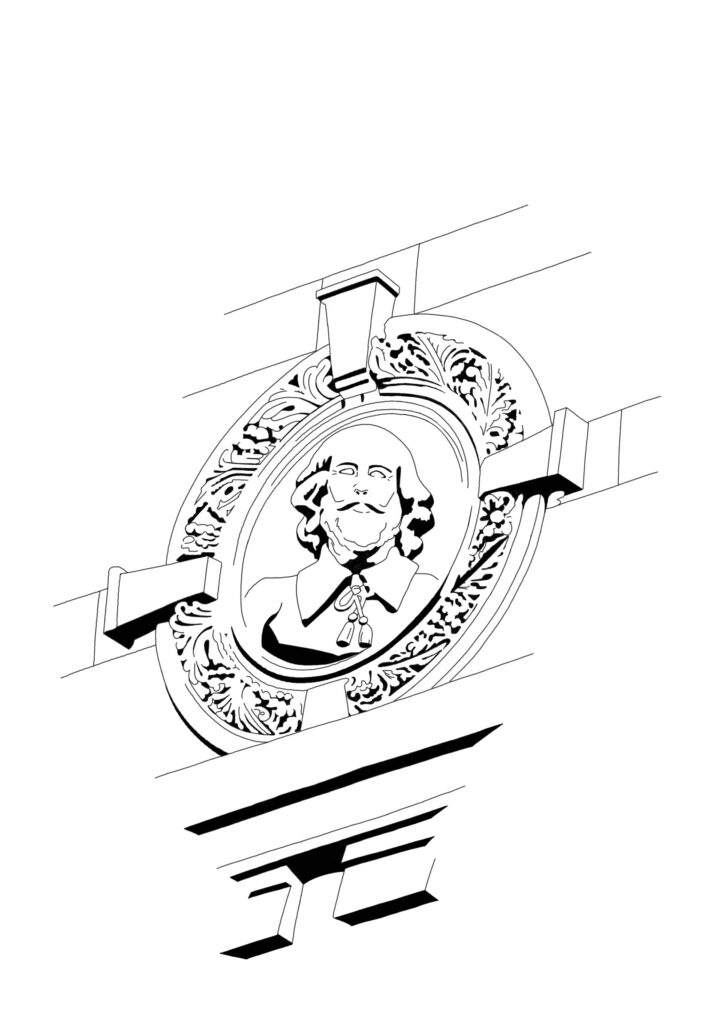 Shakespeare’s bust is accompanied by a number of other worthies: Homer, Dante, Socrates, Sophocles and Milton.