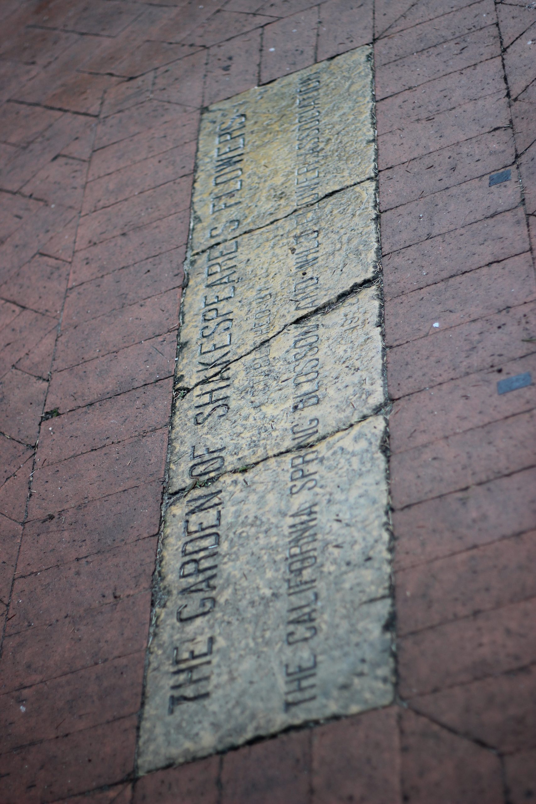 From the Huntingdon’s description of the park: ‘Located between the Huntington Art Gallery and the Virginia Steele Scott Gallery and connecting to the Rose Garden, the Shakespeare Garden features a broad variety of plants; some cultivated in England during Shakespeare’s time, some mentioned in his plays and sonnets, plus many whose ancestors trace back to plants of his Renaissance writings.’