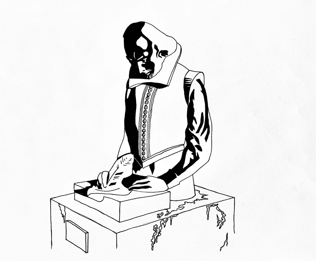 A 3/4 scale bronze figure of Shakespeare by Martin Wanserski was added May 3 1990