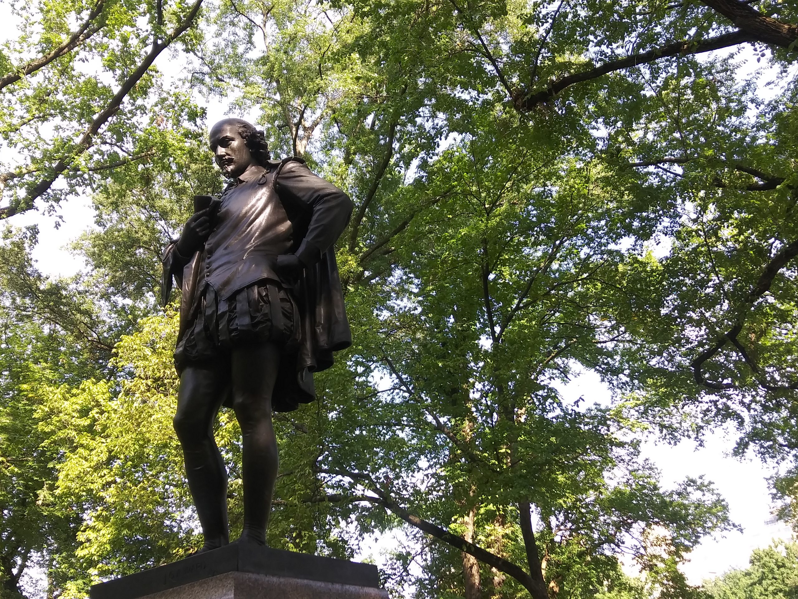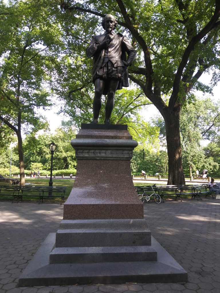 The statue is situated opposite Columbus, and was placed to commemorate 200th Shakespeare anniversary of 1776. Hackett also modelled for Shakespeare’s legs!