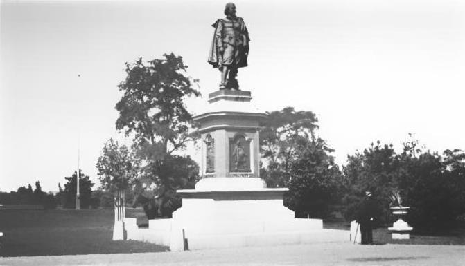 Reliefs on the pedestal show Falstaff, Hamlet, Lady Macbeth and Queen Katherine (Henry VIII).