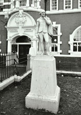 Plaque reads: ‘This statue of William Shakespeare was presented to the County Borough of West Ham by Councillor J.C. Carroll Befruary, 1925’