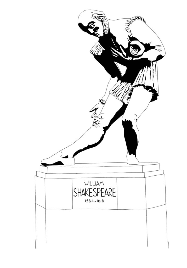 The statue was conceived as far back as 1889, and is a copy of the Shakespeare statue in Budapest. It shows Shakespeare bowing as if at the end of a performance.