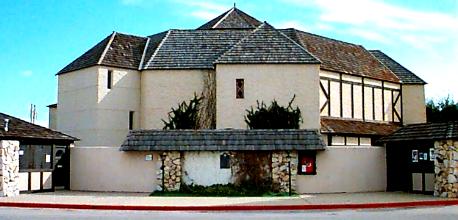 Replica Globe Theatre and library modelled on Anne Hathaway’s Cottage in Stratford upon Avon. The buildings form part of the Odessa College campus in Texas.